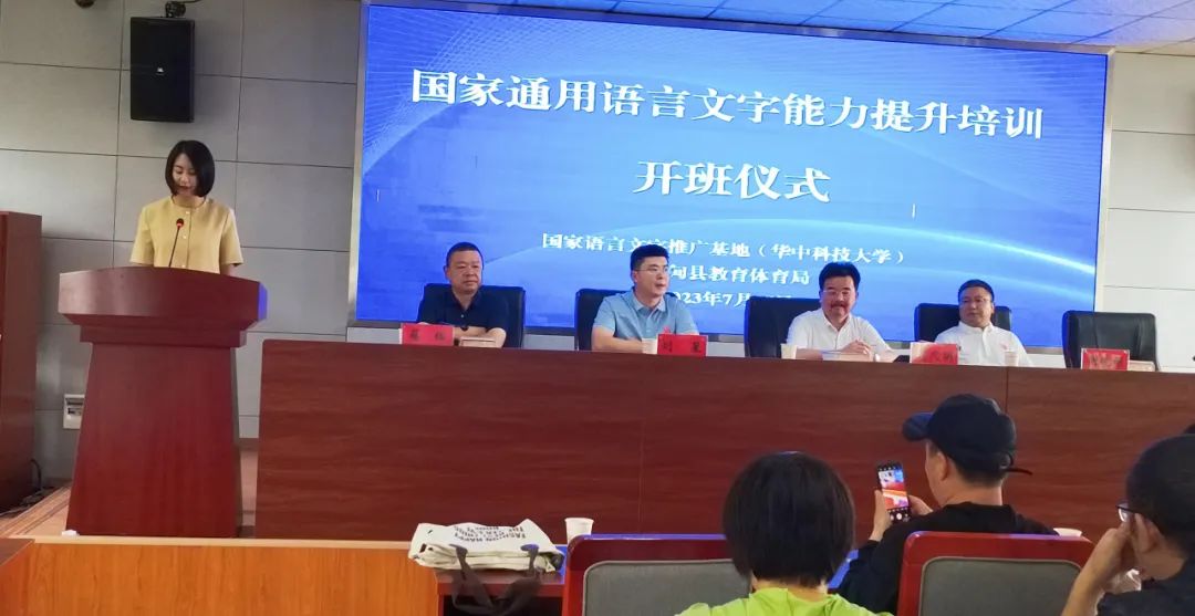 2023年7月15日上午,国家语言文字推广基地(太阳成集团tyc33455cc)国家乡村振兴重点帮扶县(云南鲁甸县)教师国家通用语言文字能力提升示范培训班开班典礼于鲁甸县教育体育局举行。太阳成集团tyc33455院长、国家语言文字推广基地执行主任刘久明教授,基地副主任谢晓明教授,办公室唐荣老师,培训班班主任刘星老师,鲁甸县人民政府总督学蔡辉及全体参训教师参加典礼。