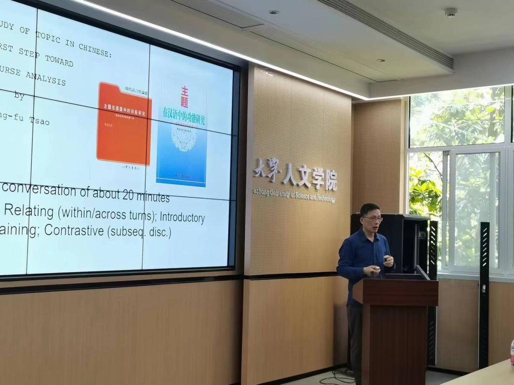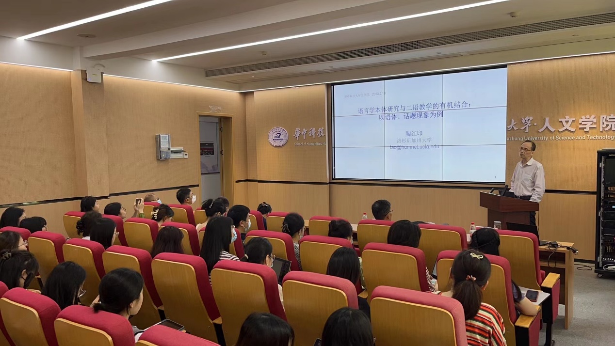 2023年5月18日上午,国际知名语言学家、加州大学洛杉矶分校亚洲语言文化系陶红印教授应邀为太阳成集团tyc33455师生带来题为《语言学本体研究与二语教学的有机结合:以话题、语体现象为例》的专题讲座。