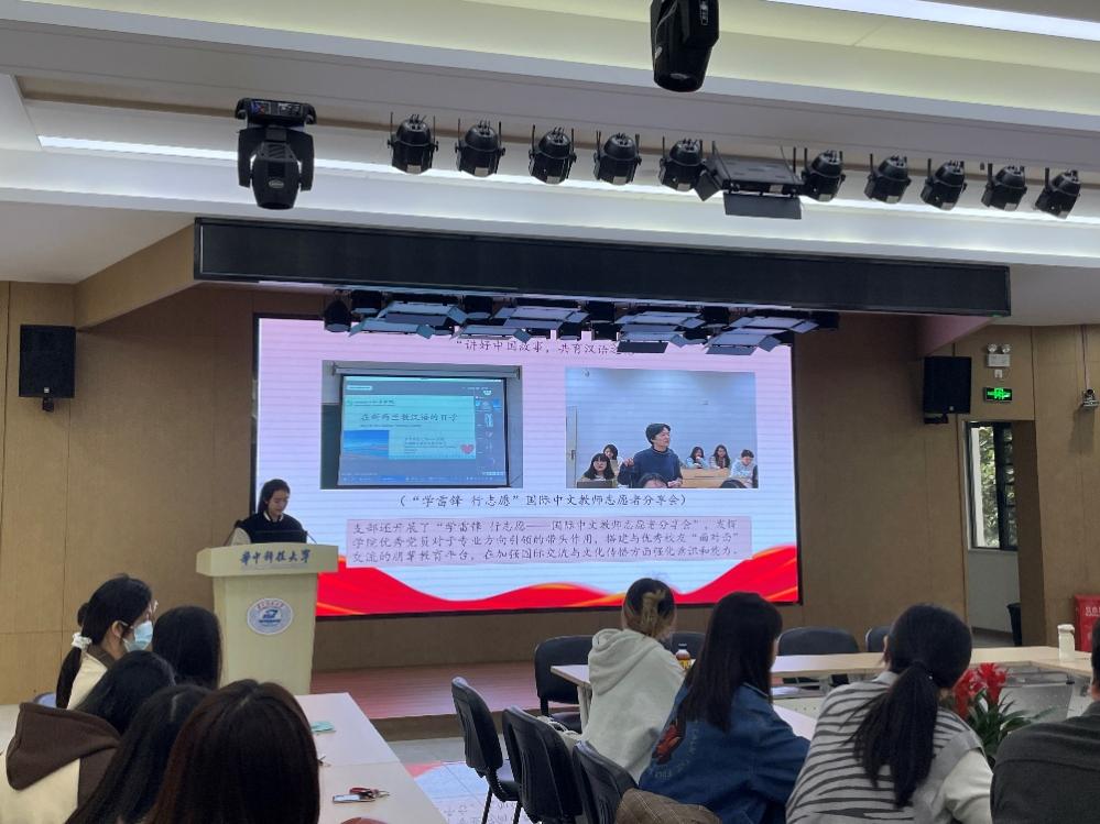 会议第四项,双方党支部成员就活动主题进行自由交流讨论。同学们对关心的专业课领域知识、海外生活经验以及专业未来发展等问题进行了提问。孔子学院工作办公室张英杰主任等老师与大家开展了深入的互动交流,老师们提出,身为中文以及中国文化传播使者,要立足中国大地,讲好中国故事,在平等、互鉴、包容的基础上进行文化交流,并择取最能代表中国文化与形象的题材,通过自己的课堂塑造出更多为世界所认知的中华文化形象,努力展示一个生动立体的中国,为推动构建人类命运共同体谱写新篇章。