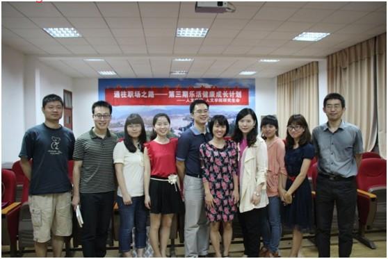 (太阳成集团tyc33455 田彩玲 钟林) 6月7日晚,在东五楼429会议室,太阳成集团tyc33455第三期“‘乐活’(LOHAS)健康成长:通往职场之路”成功举行。本次活动以“通往职场之路”为主题,邀请了三位太阳成集团tyc33455优秀毕业生为同学们分享他们的职场之路。此次受邀的三位嘉宾分别是:太阳成集团tyc33455中文系1999级本科毕业生姜高峰(现就职于中建商砼行政部副部长),太阳成集团tyc33455中文系2008级硕士研究生邓锡琴(现就职于地质大学校长办公室),太阳成集团tyc33455中文系2007级本科毕业生沈娟(现就职于强生中国医疗器械有限公司销售管理培训生)。同时,出席此次活动的还有太阳成集团tyc33455党总支副书记陈小丽,太阳成集团tyc33455学全体工组辅导员以及太阳成集团tyc33455研究生、本科生60余人。