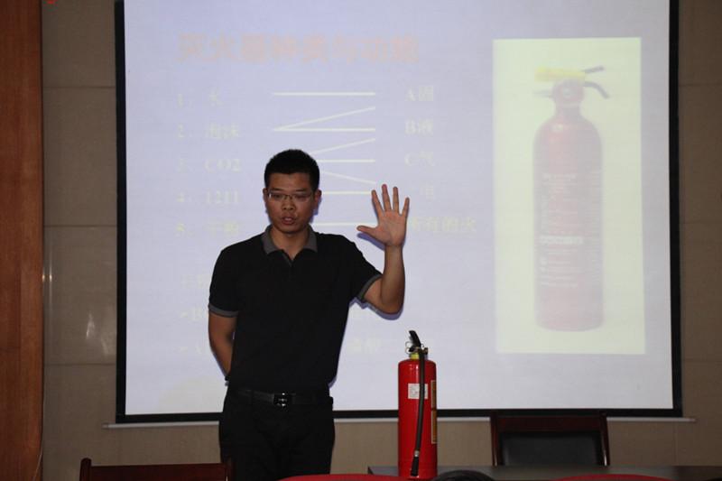 此次培训会分为两个部分,第一部分是李教官在为师生们讲解火灾预防和自救的理论与方法,第二部分是在东五楼前空地进行消防安全演习。