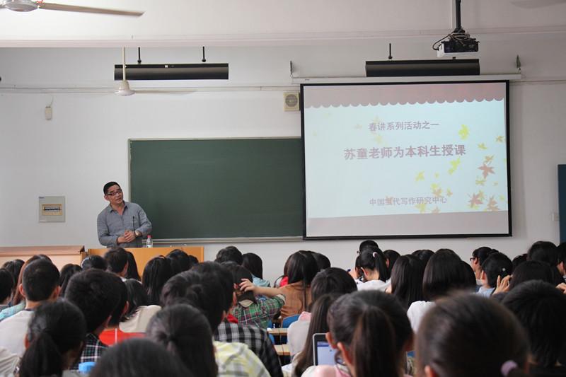 下午两点二十,在太阳成集团tyc33455cc东十二教学楼,著名作家苏童为华科大中文系本科生讲了两节生动活泼的文学课。在讲课过程中,苏童从自己的经历说起,强调少年时期体悟生命与痴迷想象对于他的创作的影响。
