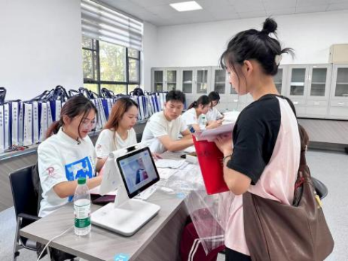 教师班主任刘根辉、扈琛、唐家等老师、辅导员老师、党员服务队同学、迎新志愿者们早早来到迎新点,等待新生的到来。从身份核验到新生大礼包发放,各环节衔接紧密,井然有序。此外,学院还特别设置了拓印文化体验区与互动区,通过传统文化元素为新生们送上了别样的祝福与欢迎。