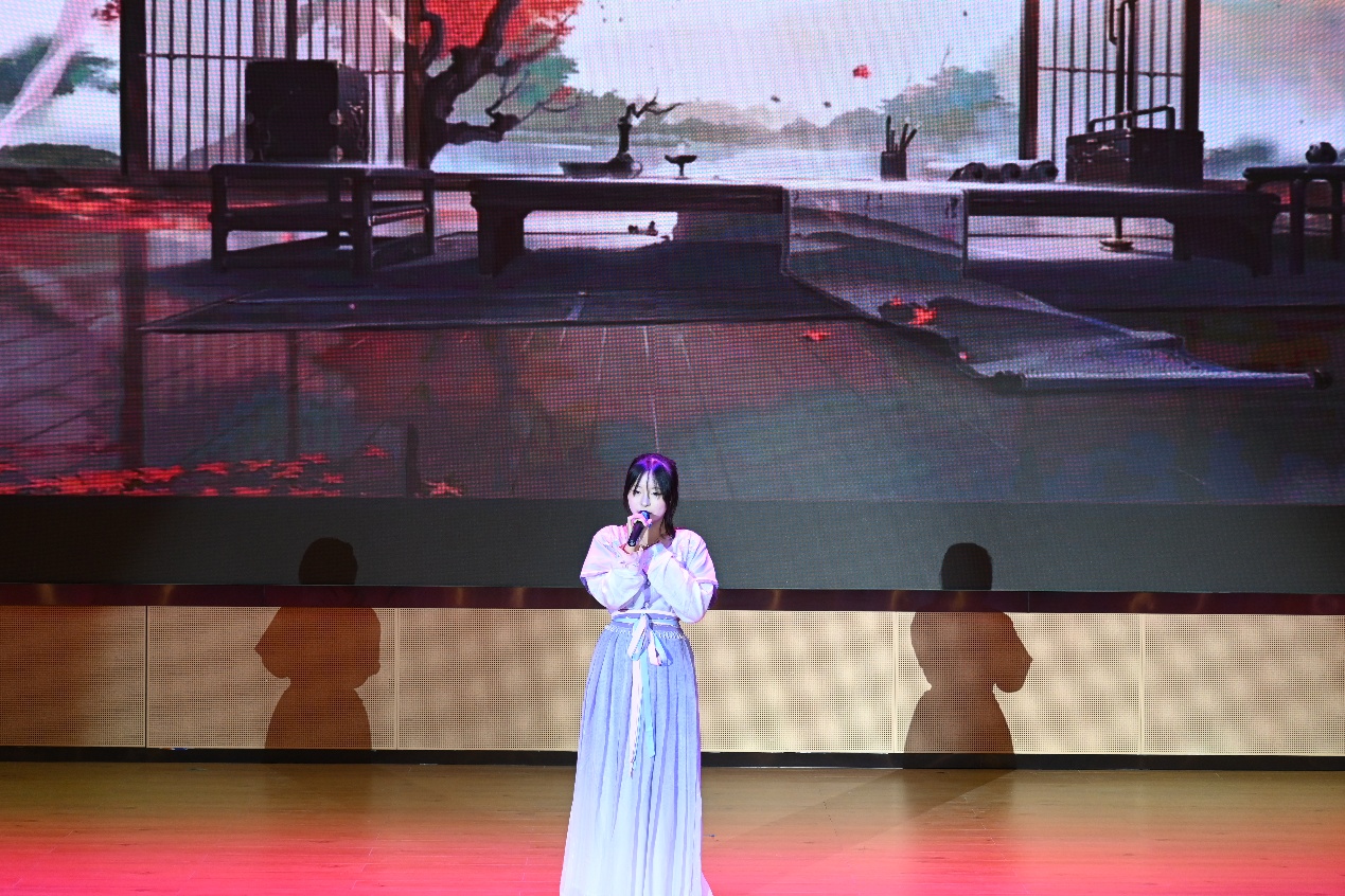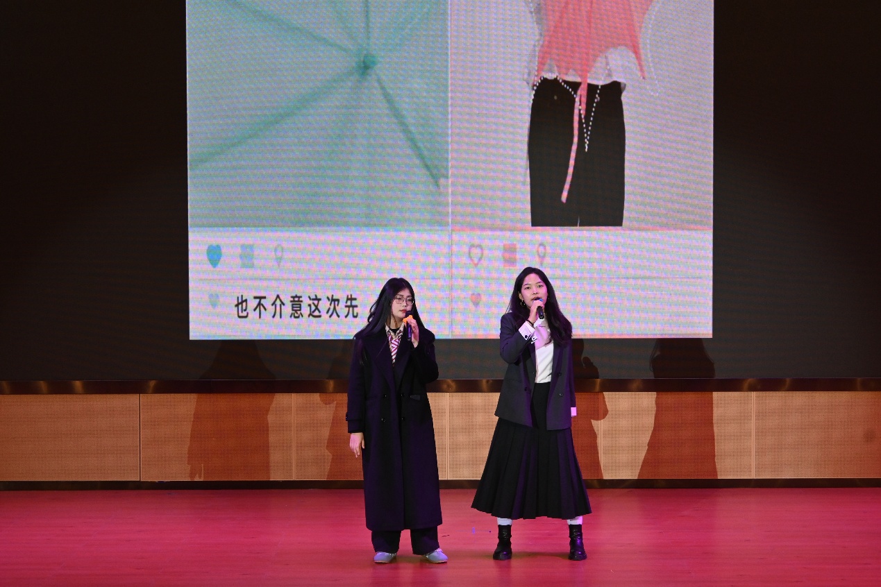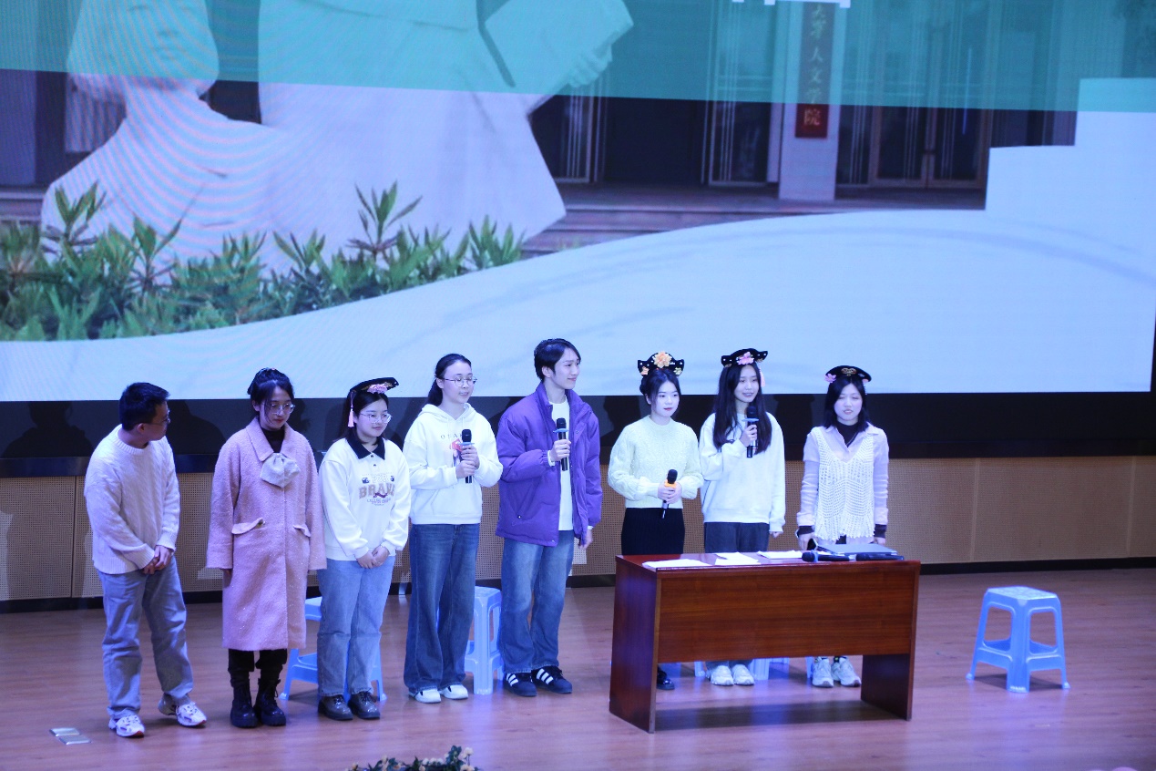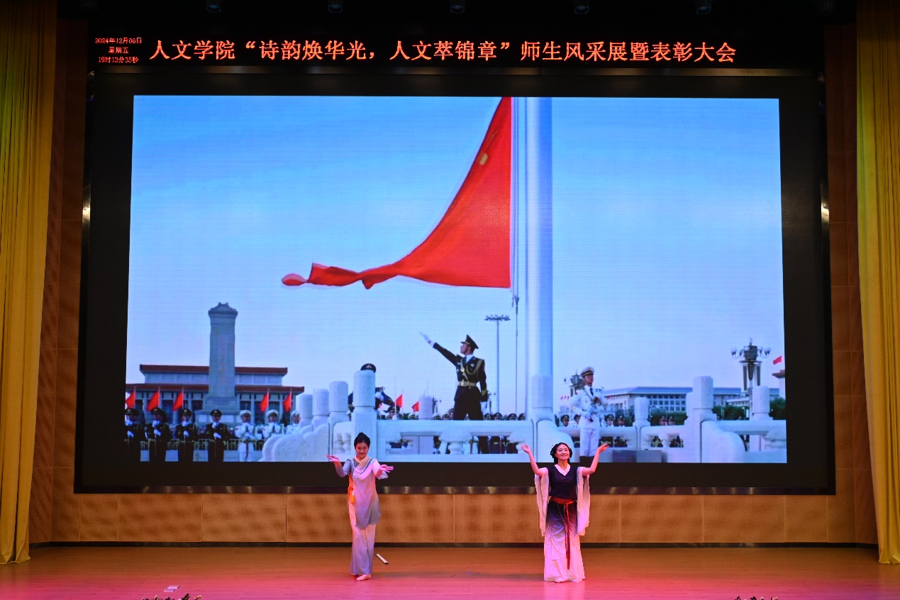 党委副书记叶智和24级本科生代表齐诵共唱《少年中国说》,字字激昂、振奋人心。辅导员和德育助理完美演绎的《如愿》以及群舞《APT》等节目也让人感受到了深深的情感与活力。陈禹等青年教师合唱的《New Boy》及群舞《forever young》展现了青春活力与激情。压轴小品《研一生存指南》以诙谐的语言和自然的演技,提醒大家谨防电信诈骗、践行学术诚信。