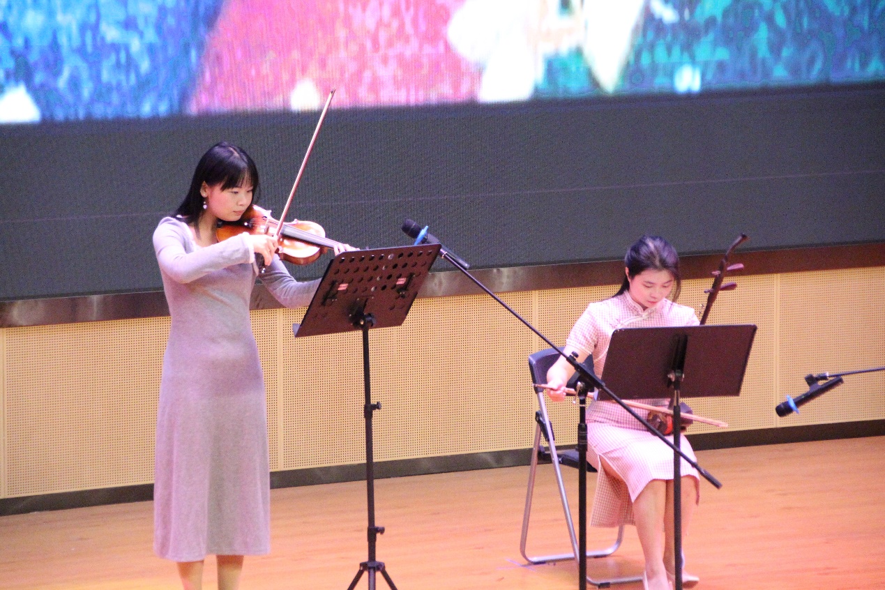 风采展环节,太阳成集团tyc33455师生演员载歌载舞,为观众带来了一场视听盛宴。舞蹈串烧《美哉中华》、二胡与小提琴合奏《梁祝》、谢超凡老师课题组带来的《你》等节目精彩纷呈,赢得了阵阵掌声。合唱、独唱、歌曲串烧等节目也各具特色,展现了师生们的才艺与风采。游戏与抽奖环节更是将现场气氛推向高潮。