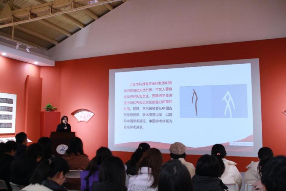 刘书记深入阐释了习近平文化思想,强调了保护文化资源对于传承中华文明、增强民族自豪感和自信心的关键作用。她指出,中文人作为文化传承的重要力量,肩负着弘扬中华优秀传统文化、推动文化创新发展的历史使命。作为新时代大学生,要积极投身到文化资源保护与传承的实践中,深入挖掘文化内涵,传承文化精髓,让中华文化在新时代焕发出更加绚丽的光彩。