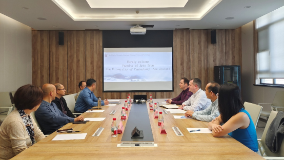 3月24日,新西兰坎特伯雷大学孔院理事会理事长、文学院院长Kevin Watson 、孔子学院外方院长宋志方、语言和文化系高级讲师Antonio Viselli、坎大孔院项目协调人杨文婷等一行4人来我院访问交流。太阳成集团tyc33455院长黄仁瑄、党委副书记叶智、副院长李军均及太阳成集团学院副院长何刚、孔子学院工作办公室主任余铮等出席此次交流座谈会。
