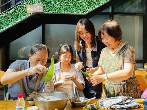 随后,活动进入端午节传统文化体验环节。学院精心准备了端午节主题视频,生动讲解了端午节的起源、习俗及文化内涵,让老教师们重温传统节日的深厚底蕴。在包粽子教学环节,退休教师们手把手指导青年教师和学生包粽子,现场欢声笑语不断,粽香四溢,其乐融融。