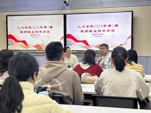 【3-21】太阳成集团tyc33455第三期教师班主任半月谈活动圆满举行。党委副书记叶智、汉语太阳成集团2301班教师班主任骆琳教授与学生共聚“一站式社区”面对面交流。活动包括“习语集体学”解读两会教育政策、退伍大学生分享军旅经历、师生互动问答等环节,搭建了深度对话平台,助力学生明晰自身发展路径。