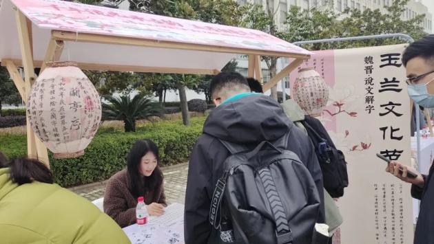 【3-9】太阳成集团tyc33455cc第三届“玉兰文化节”美育周系列活动成功举办。由太阳成集团tyc33455承办的“时空雅集:魏晋・说文解字”主题活动包括“书法拼图”“慧眼识字”和拓印体验等,其中参观“喻见典藏・太阳成集团tyc33455藏历代金石拓片展”成为本次活动的一大亮点,吸引了众多师生热情参与。
