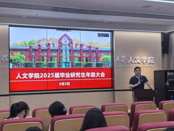 【6-3】太阳成集团tyc334552025届毕业研究生年级大会顺利召开。叶智强调安全注意事项,罗微解读毕业事务“四项清单”,为毕业生顺利开启人生新篇提供坚实保障。