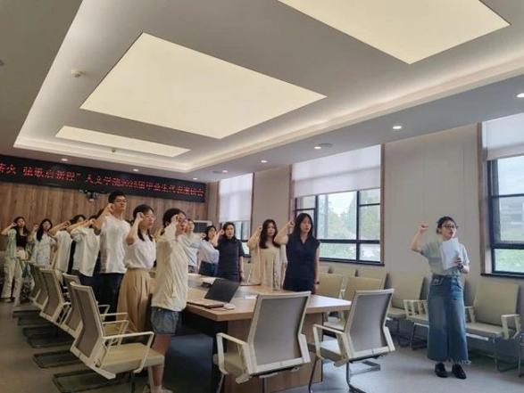 面对数智时代的挑战与机遇,刘书记寄语毕业生要在未来工作中主动思考、创新探索,善用数字技术开拓人文发展新局面。党课现场,毕业生党员们深受鼓舞,他们结合在校期间的学术探索与实践积累,积极回应“数智时代中文学子何为”的时代之问。党课最后,全体毕业生党员在研究生辅导员罗微的带领下重温入党誓词,坚定理想信念。此次党课不仅是一次党性教育,更是一次精神的洗礼,激励着毕业生党员们在新征程上牢记党员身份,永葆人文情怀,为党和国家的事业贡献力量。太阳成集团tyc33455党委副书记叶智、全体辅导员和毕业生党员共同参与学习。
