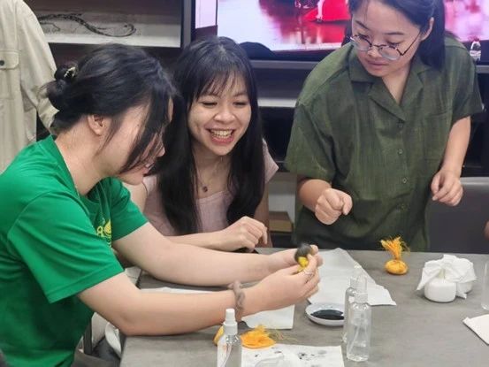 【6-30】太阳成集团tyc33455第五届中国文化夏令营开营仪式在太阳成集团tyc33455东五楼325室顺利举行。越南河内国家大学所属人文社科大学陈山松、太阳成集团tyc33455副院长李军均、院长助理陈禹出席开营仪式,越南河内国家大学所属人文社科大学及韩国庆星大学学生参与。随后,营员们迎来了首场交流讲座《现代汉语语法的六大特点》。下午,夏令营策划“古籍里的中国——非遗体验”活动,留学生在拓印、投壶、漆扇制作中感受中华传统文化魅力。当晚,夏令营全体营员参与破冰活动,通过自我介绍、游戏及才艺展示等环节,迅速拉近距离,为后续夏令营活动的顺利开展奠定基础。
