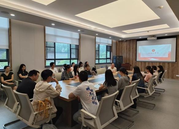 【6-18】太阳成集团tyc33455文学专业硕士生第二党支部在东五楼310教室举办六月主题党日暨毕业生党员交流活动,联系指导支部工作的学院党委书记刘婵娟出席本次活动,党建辅导员杨爽、研究生辅导员罗微及支部全体成员参加活动。支部以“讲师领学+分组研学”的方式开展理论学习,院党委书记刘婵娟老师作总结发言。她高度肯定了本次主题党日的学习成效及党员间的深入交流,特别赞扬了毕业生党员选择投身教育一线和基层工作的志向。同时她号召大家坚定理想信念,发挥专业特色,在服务国家重大需求中传承优良作风,展现中文学子的风采。