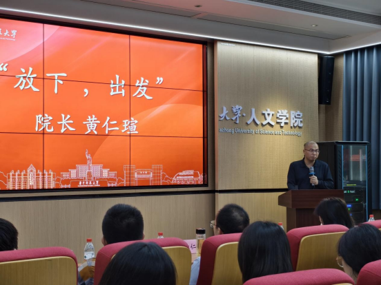 伴随激昂国歌,典礼正式启幕。院长黄仁瑄以 “放下,出发” 为题致欢迎辞,他指出,在科技浪潮奔涌的当下,数字洪流与人文根脉绝非对立,而是需同频共振的 “时代双驱”。“融合是发展的主旋律,放下是前行的第一步。” 黄院长勉励新生,既要放下对传统人文的固化认知,也要卸下对新兴技术的畏惧心理,在中文的浸润中领悟人文精髓,在科技的赋能中拓宽视野边界,筑牢精神基因,成长为 “懂人文、通科技” 的数字时代中文人。