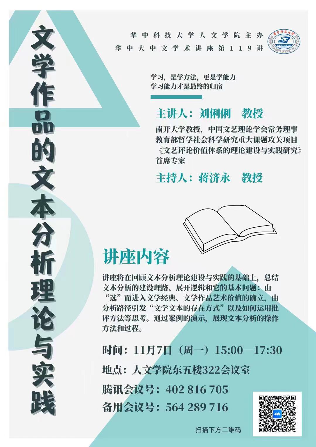 华中大中文学术讲座第119讲:文学作品的文本分析理论与实践