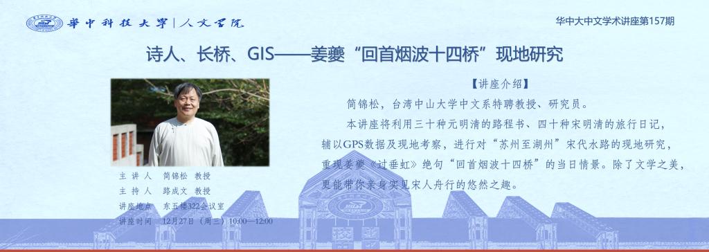 华中大中文学术讲座第157讲:诗人、长桥、GIS─姜夔「回首烟波十四桥」现地研究