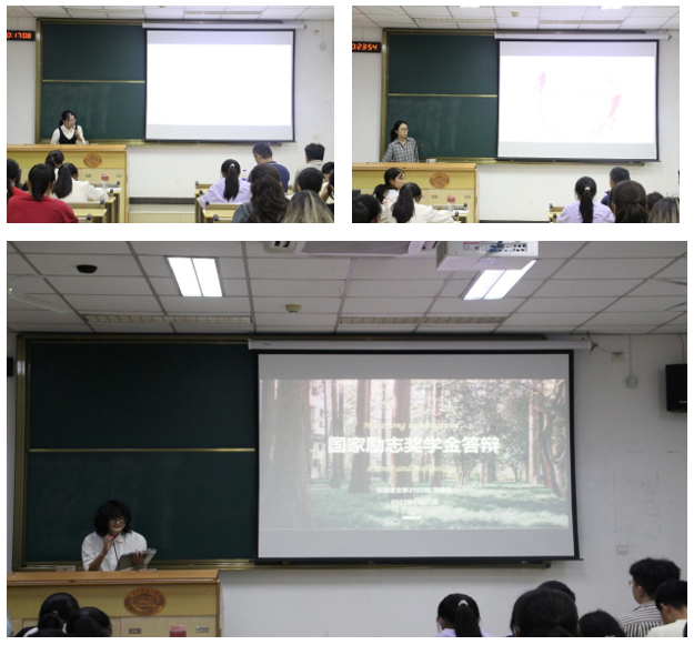 接下来的国家励志奖学金分享环节中,邵嘉逸、王美文、余锁湘、陶艾兰、向粤等同学自强不息,家庭困难但从不放弃,在学习上、思想上、工作上、生活上都取得了亮眼的成绩,在热爱中努力成长,在探索中成为了更好的自己。