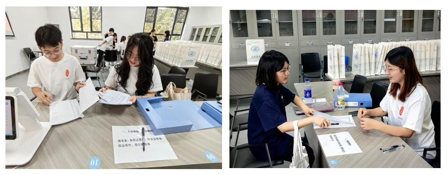 上午8点,迎新活动正式开始,2023级新生陆续到来。在志愿者热情细致的引导下,他们依次完成了资料审核、人证核验、领取物资等入学手续。活动现场还设置拍照墙,帮助新生记录开学的独家记忆,定格青春的难忘瞬间。