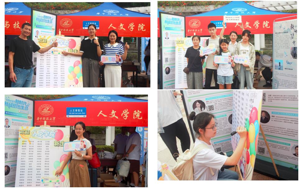 迎新点外设置形式多样的打卡活动,吸引新生们纷纷驻足,在爱因斯坦广场留下与华科大的第一次合影。