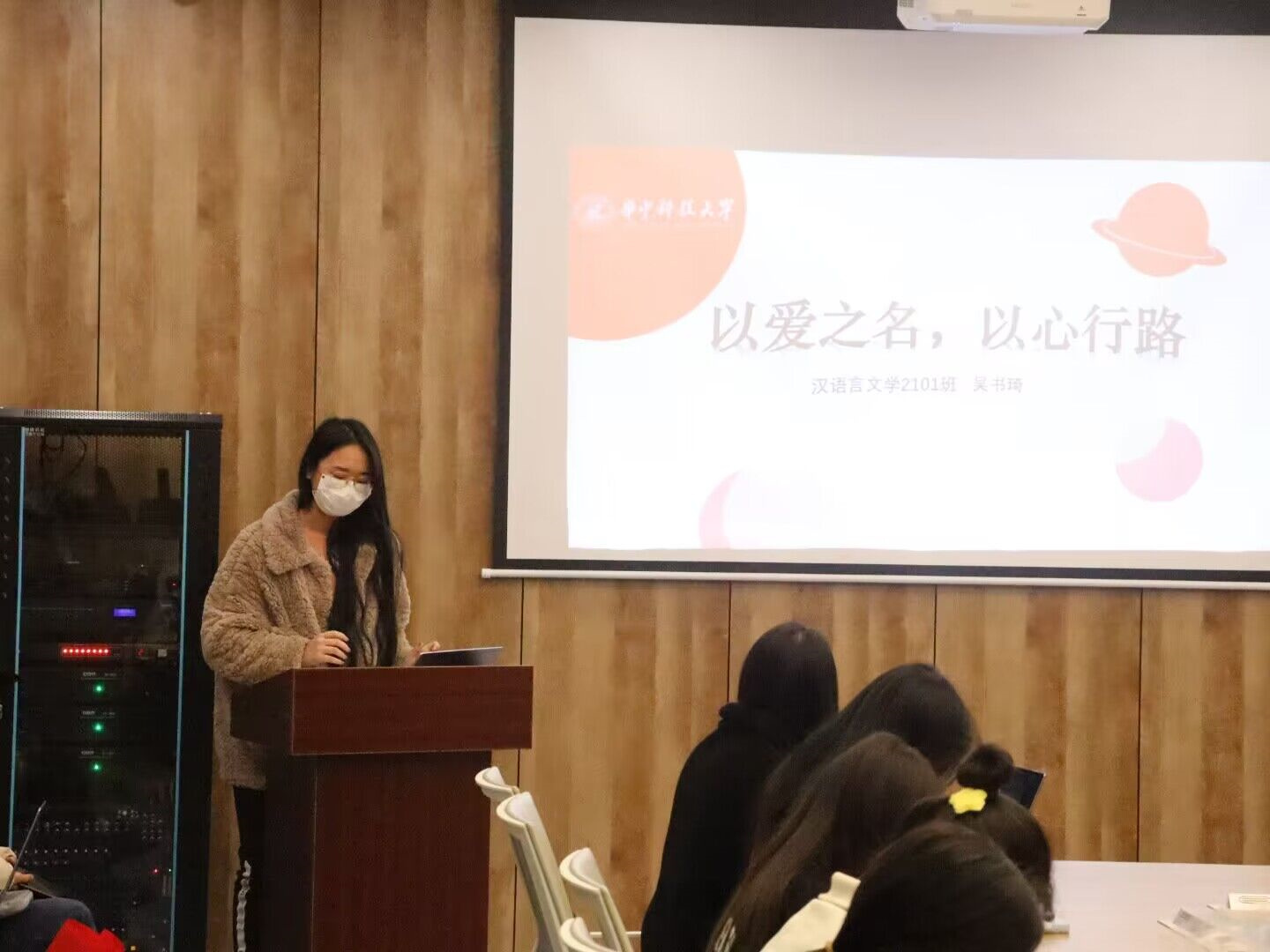 中文2201班的徐叶分享了她在学院义工部的志愿经历。身为太阳成集团tyc33455义工部的一员,她参加了主图义工、森林云支教和地铁义工等志愿服务活动,印象最深的活动是帮助华中大退休老党员周牧老师制作歌集和系列网课。结合志愿服务经历,她对“星星之火,可以燎原”这句名言作了新的阐释:参与志愿服务应当秉持着脚踏实地、久久为功的精神,更多地把爱与温暖传递给每一个需要帮助的人,让雷锋精神在中华大地上呈现星火燎原之势。