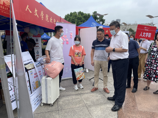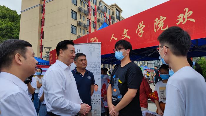 在爱因斯坦广场迎新点,校党委书记李元元、校长尤政、校党委副书记马建辉等校领导莅临迎新点,与来报到的新生同学进行亲切交流,传达了华中大对新成员热情的欢迎和温暖的关怀。