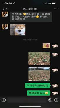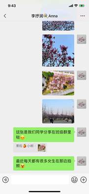 黄婧怡同学与来自韩国的慎泰范经常交流日常生活,从午饭菜品到运动爱好都有分享,华科校园的春意盎然也被记录下来,共赏春色。