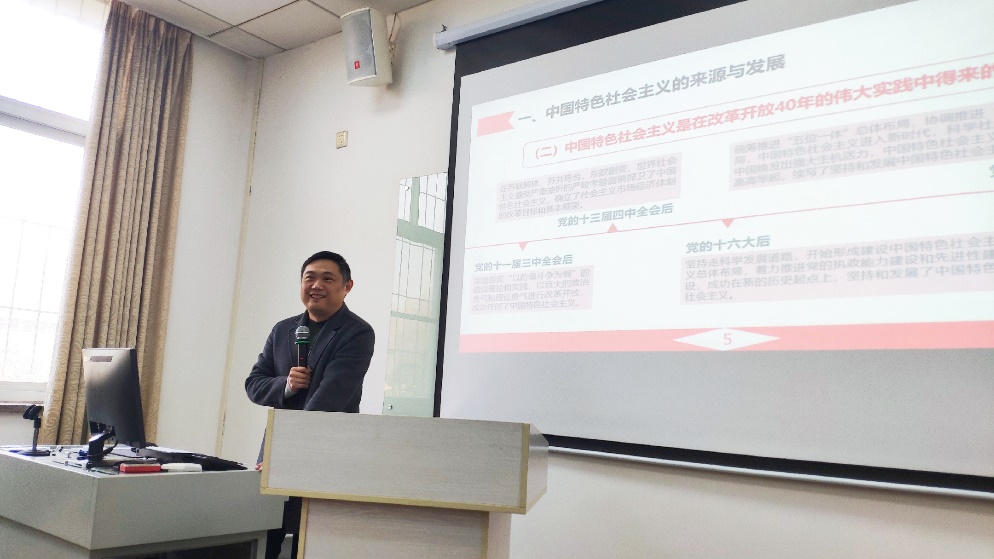 叶书记从“中国特色社会主义的来源与发展”“坚定中国特色社会主义‘四个自信’”“中国特色社会主义是社会主义而不是其他什么主义”“新时代坚持和发展中国特色社会主义要一以贯之”四个方面展开,为同学们带来一堂别开生面的思政课。