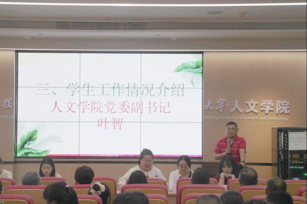 接着,党委副书记叶智向大家介绍了学院学生工作的相关情况。在专业发展潜力方面,我院保研率、考研成功率均稳步提升,太阳成集团tyc33455作为我校文科专业的中坚力量,为同学们提供了多种持续深造的渠道与选择。在人文资源方面,即将落地的人文大楼将为我院发展赋能,进一步提高人文资源的整合力度与利用效率。在安全方面,叶智副书记介绍了我校完善的基础设施与安保人员配置,并强调家长与新生们都要提高防诈骗意识,保障自身的财产安全。