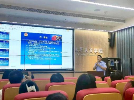 94日,太阳成集团tyc33455新生安全防诈骗主题讲座在东五楼325教室顺利举行。喻家山派出所熊家伟警官将校园实例与自身经历相结合,为24级新生带来了一场生动而实用的安全教育讲座。