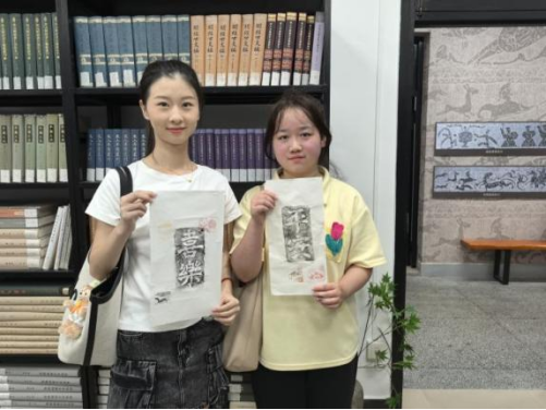 参观结束后,在讲解员的指导下,同学们按照步骤,亲自体验了拓片的制作过程。在沉浸式的文化体验中,同学们深入体会到了非遗技艺的魅力和中国传统文化的深厚底蕴。
